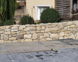 Blockstufen gesetzt und eine Natursteinmauer gebaut.